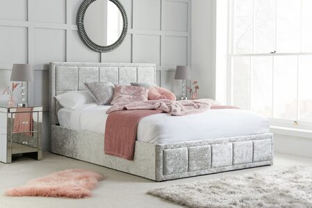 King Ottoman Bed Steel Crushed Velvet