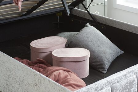 The Hannover Fabric Ottoman bed has been designed to provide style and comfort with a sprung slatted base for natural bounce, the frame adjusts to where pressure is exerted most, providing greater comfort.